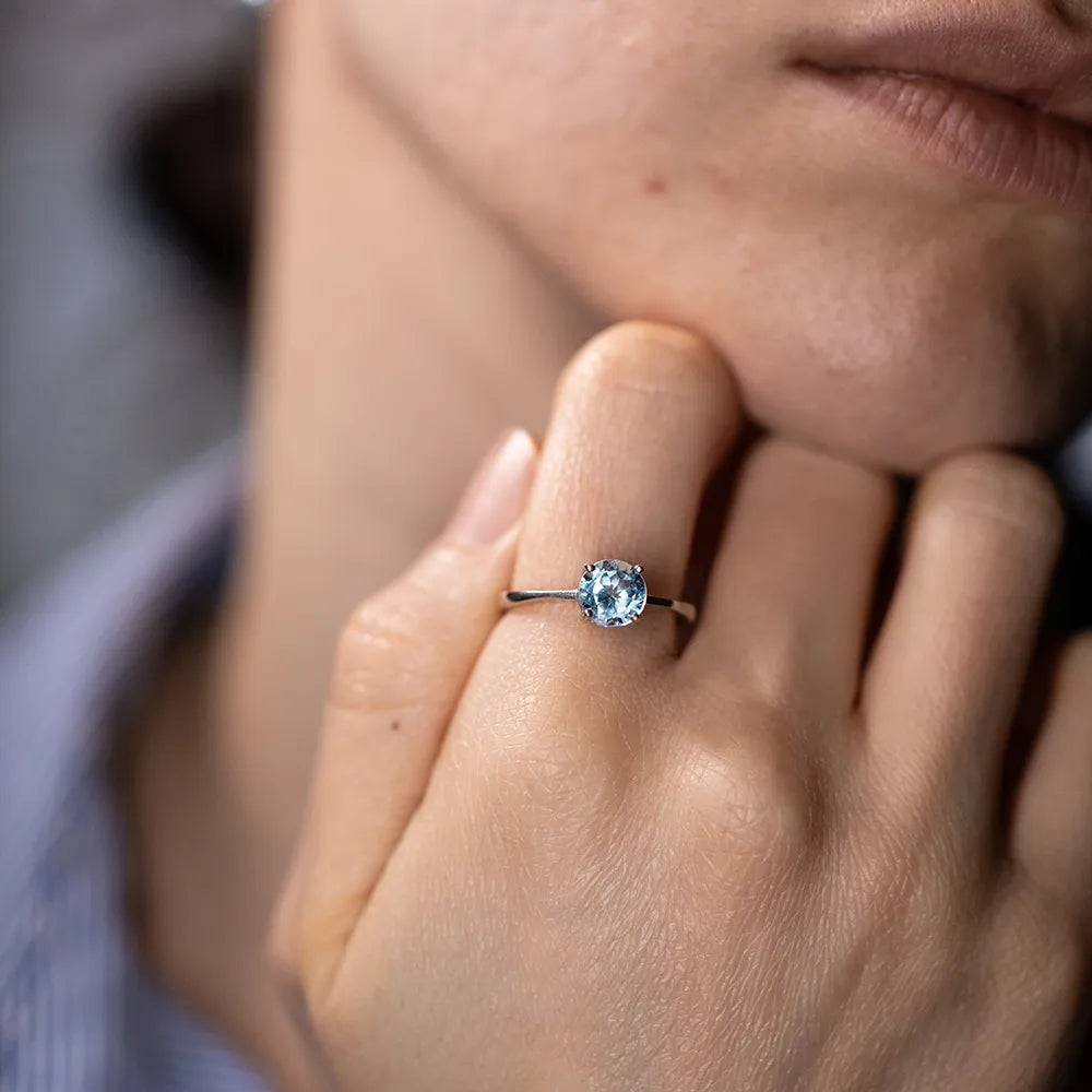 The Amphitrite’s Grace Set celebrates the serene elegance of Amphitrite, the goddess of the sea. The soft blue stones, reminiscent of the tranquil ocean waters, evoke calmness and beauty, while the sterling silver setting reflects the timeless splendor of her mythological realm. The round cut symbolizes the eternal cycle of tides, representing balance and harmony.