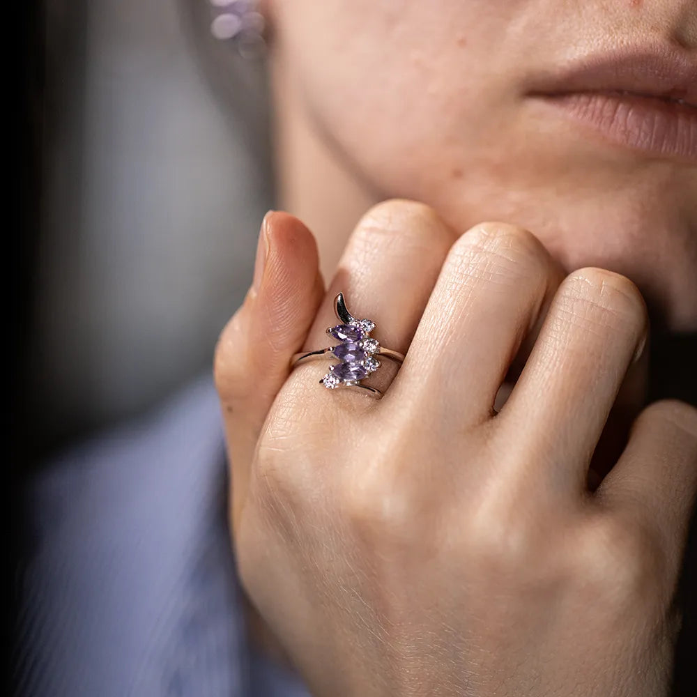 The Flora’s Bloom Set is a tribute to Flora, the Roman goddess of flowers, spring, and renewal. The soft lavender marquise stones evoke the gentle hues of blooming petals, while the sterling silver design flows like vines in a springtime garden. Each piece in this set celebrates nature’s elegance and the joy of renewal.