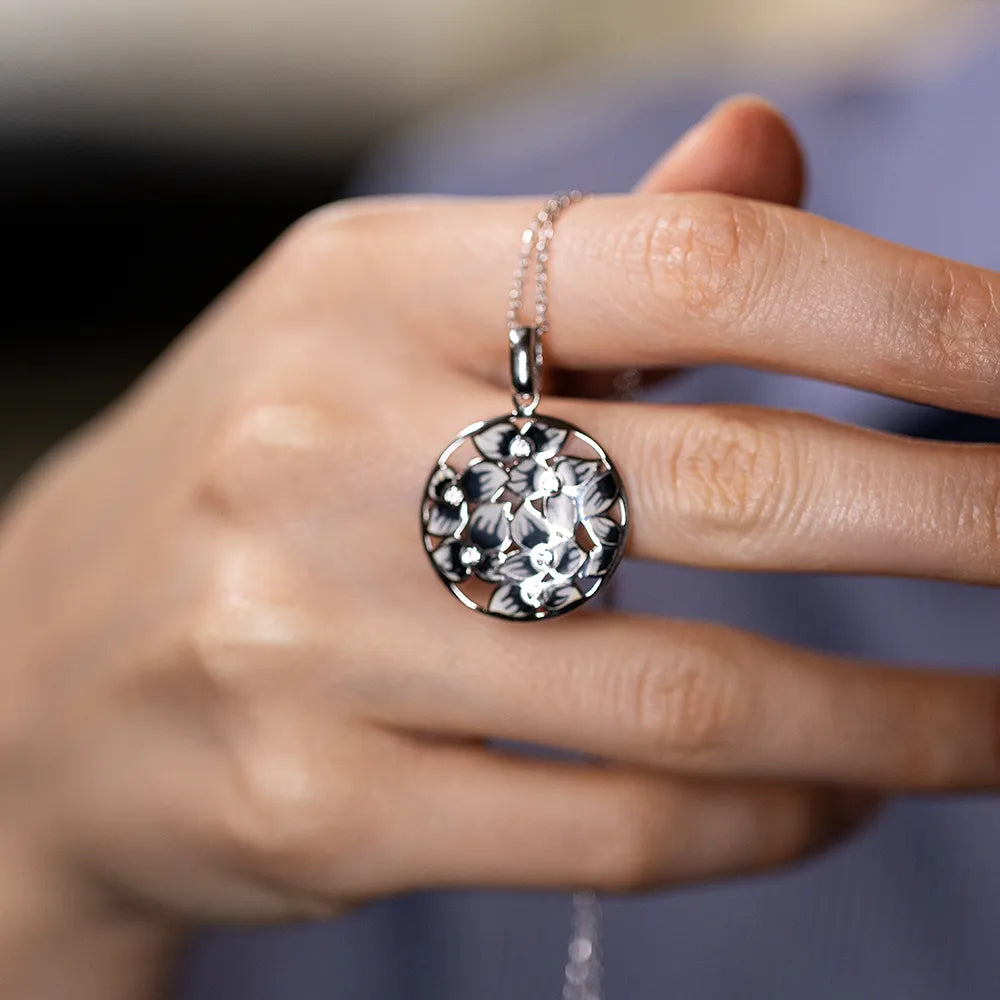 Radiating vibrant elegance, the “Aurelian Bloom Set” captures the colorful essence of nature’s beauty, inspired by the golden era of Roman artistry. Crafted from sterling silver .925 and adorned with colorful enamel patterns, this teardrop-shaped pendant and matching earrings symbolize abundance, joy, and prosperity. The interplay of vivid hues and delicate floral motifs celebrates the dynamic and spirited life of ancient empresses.