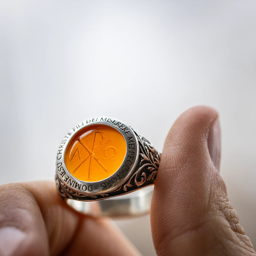 We're offering just 60 of these exclusive intaglio rings due to the specialised craftsmanship involved and the limited supply of high-quality Carnelian stones.