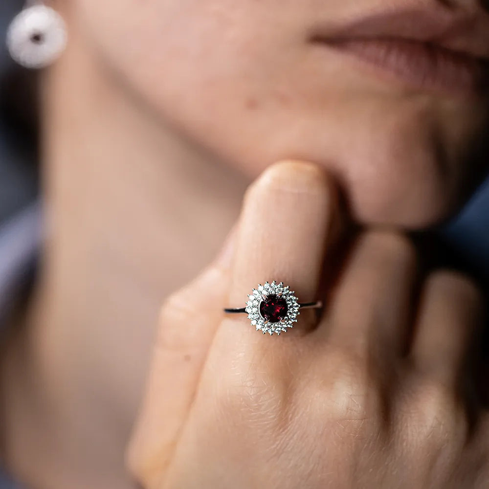 This stunning silver jewelry set, featuring deep red garnet stones framed by radiant white accents, exudes the grandeur of imperial Rome. The garnet, revered by ancient Romans as a symbol of power and protection, was believed to bring prosperity and ward off harm. Its fiery hue represents the vitality and courage of an empress who commanded respect and admiration.